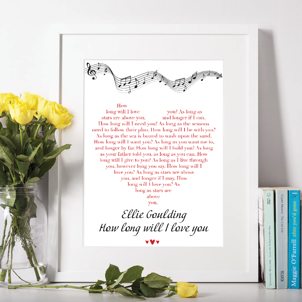 Our A4 heart-shaped song lyric prints beautifully blend your favourite lyrics into a captivating heart design. Maybe your wedding song or first dance song? Perfect for personalising your space or gifting to a loved one.
