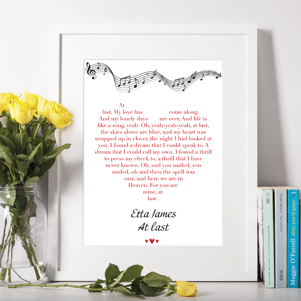 Our A4 heart-shaped song lyric prints beautifully blend your favourite lyrics into a captivating heart design. Maybe your wedding song or first dance song? Perfect for personalising your space or gifting to a loved one.